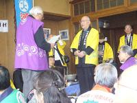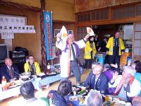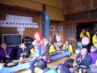 鈴木村長のお孫さんがまといでお払いをしてくれ、ひょっとこ踊りから応援団まで出てきて、とてもにぎやかな開村式でした。