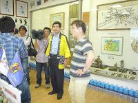 レポーター竹田君と!館長河童に大変身 / 竹田君と打ち合わせ中