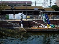 船から川の中を、また両岸と川沿いの車道を徒歩で、ゴミなどを回収しました。