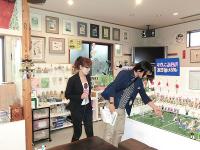 「こんにちは〜」笑顔で来館された小野澤玲奈さん / スタッフと打ち合わせ中