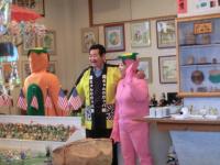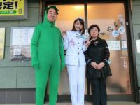 カッパとの出会いから、河童連邦共和国のこと、みんなで川がきれいになるように活動していることなど、お二人は興味深く聞いてくれました。こちらの話を引き出すのが、お二人とも上手いです。お二人にのせられていろいろしゃべってしまいましたが、どう編集して放送するのか楽しみです。そして、お約束のカッパの着ぐるみです。お二人とも、カッパ!似合ってましたよ。